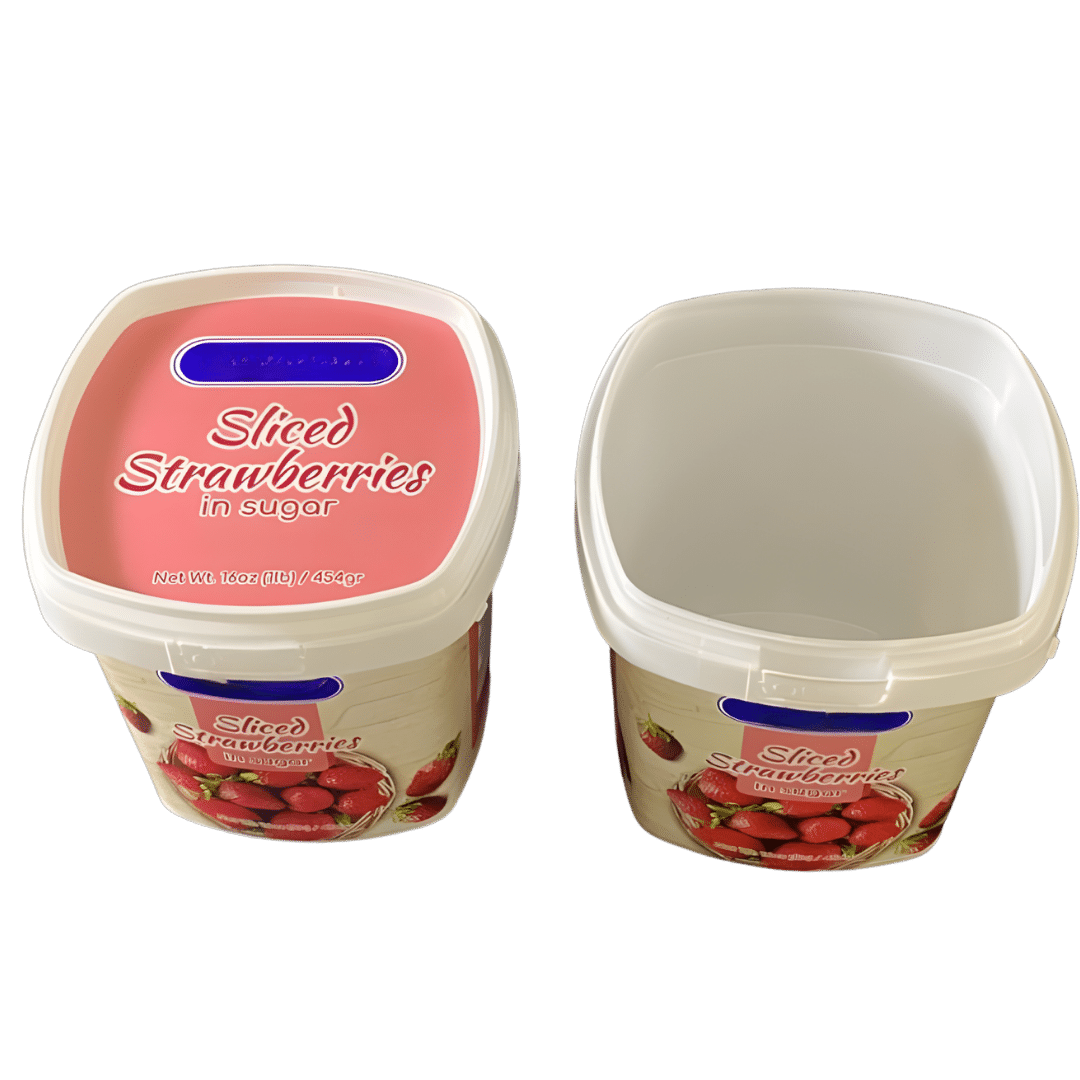 DOK595 is an 20oz special design PP IML container & lid produced with injection moulding. It is a very sturdy and attractive solution of packaging, transportation and storage for many kind of products like frozen fruits and veggies. Divan Packaging LLC is able to customize the printing on the container and its lid as per his customer’s IML artwork.